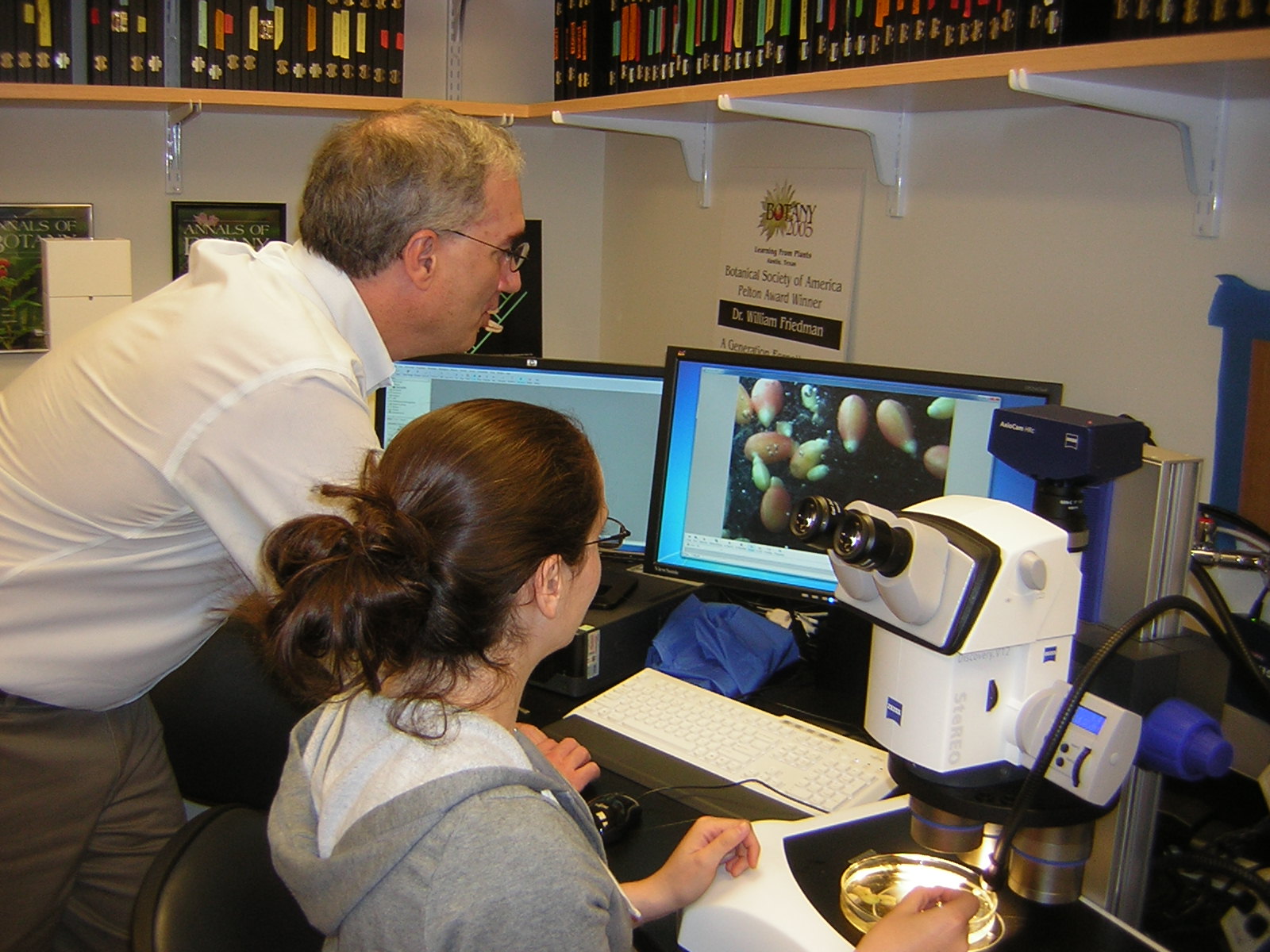 Friedman and Faye Rosin, the Arboretum’s director of research facilities, recently gave the Gazette a tour of the facility. Grad students and faculty bent over microscopes and adjusted experimental set-ups.