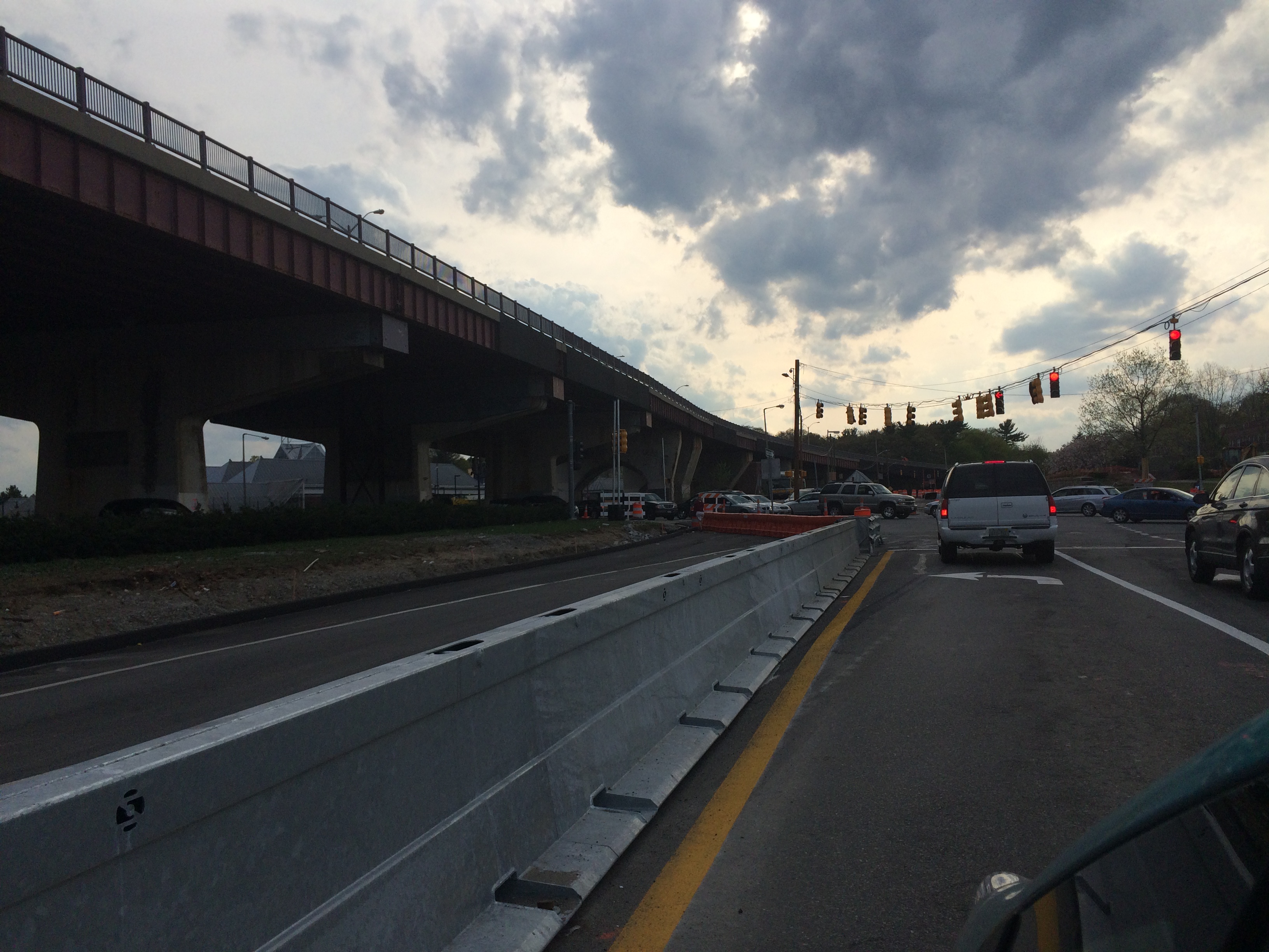 During the initial phase of demolition, westbound traffic will travel along the temporary roadway from Shea Circle to the Arborway onramp at South Street. Right and left turns will be permitted at the intersections with Washington Street and South Street. Eastbound traffic will be split at the eastern end of the overpass.