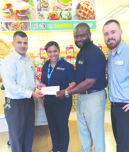 Stop & Shop’s Family Foundation donated $1,200 to the nonprofit ABCD for its food pantry program. Pictured from left to right: Stop & Shop employee Kumar Munish, Mirta Rodriquez and Francois Fils-Aime of ABCD, and Stop & Shop employee Sean Carraghan. (Courtesy Photo)